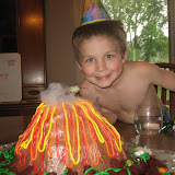 What a kid!! CJ celebrated turning 5 with one heck of a full Saturday. He requested french toast and bacon for breakfast and for dinner, Dino-nuggets, curly fries and corn on the cob. We spent the middle of the day at Six Flags Great America and purchased season passes as his and my combo gift. Jen and Maddie made a volcano cake with the utmost attention to detail including smoke billowing out of the top with dry ice. We gave him his Heely's several weeks ago as an early birthday present so as to offset the pain of buying $60 shoes for growing feet. He had been requesting a few varied but specific gifts for his birthday for some time, a remote control tarantula, sports headband and wristbands and the Pancake Puffs kit as seen on TV.